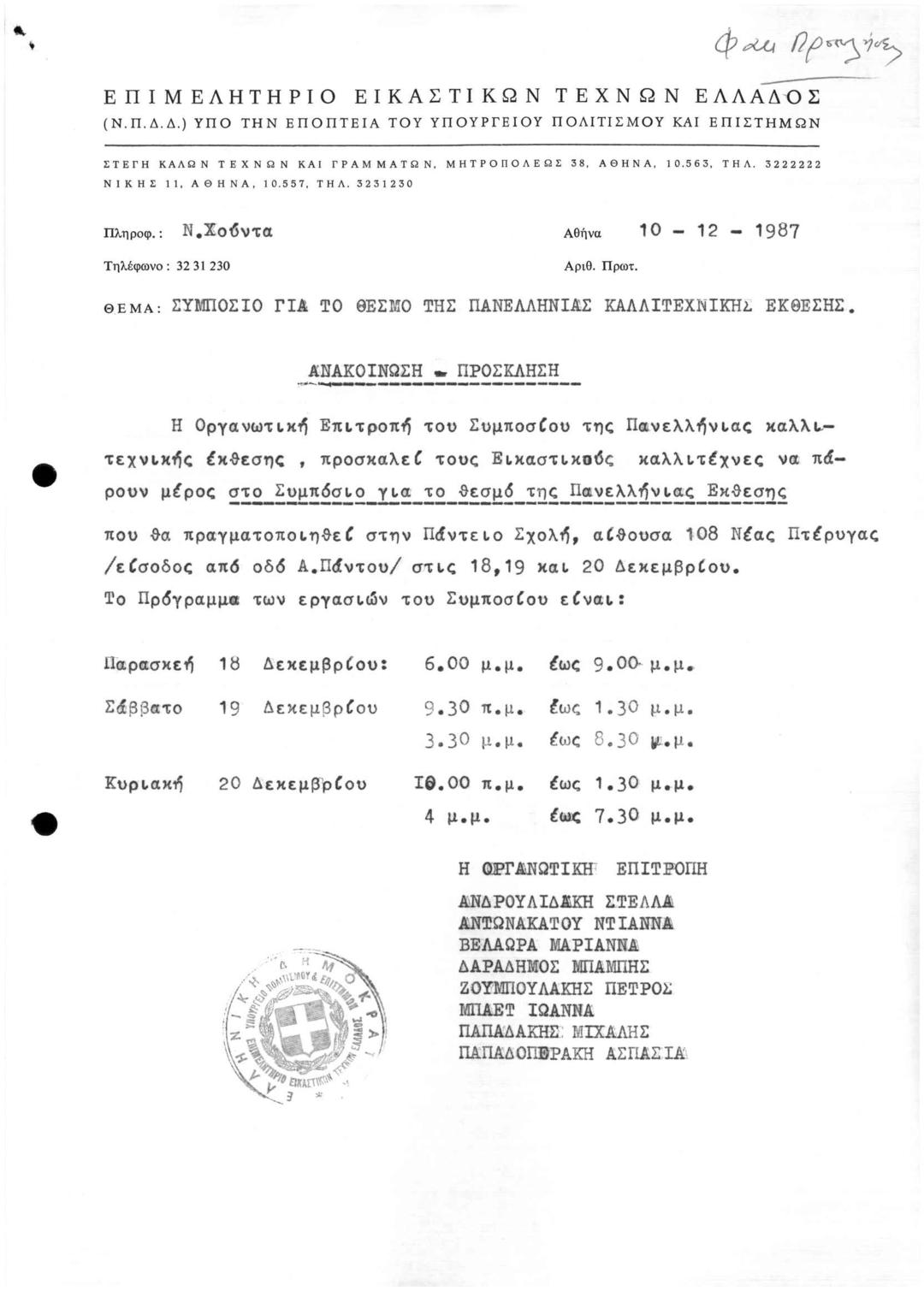Συμπόσιο για τον Θεσμό της Πανελλήνιας Καλλιτεχνικής Έκθεσης