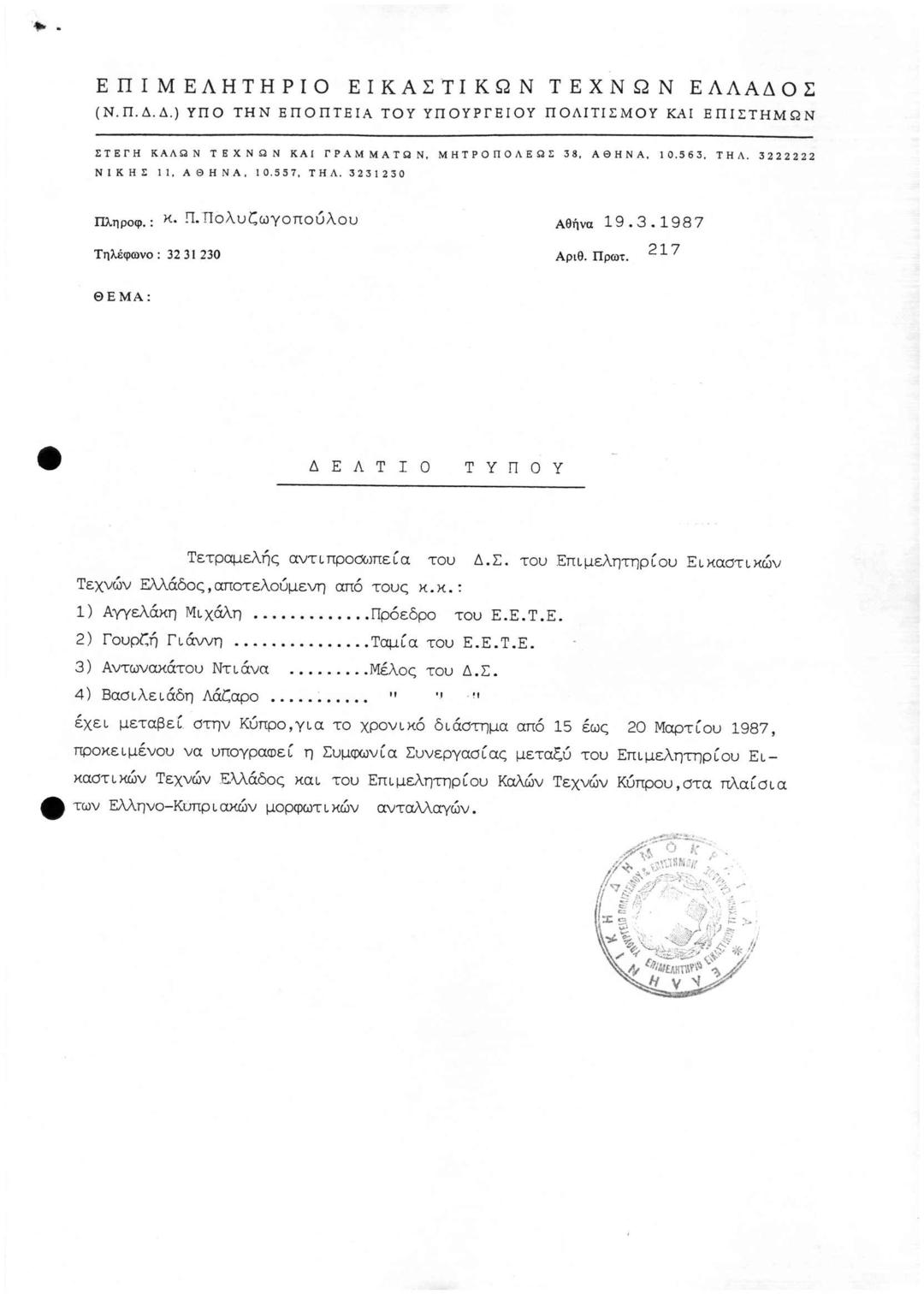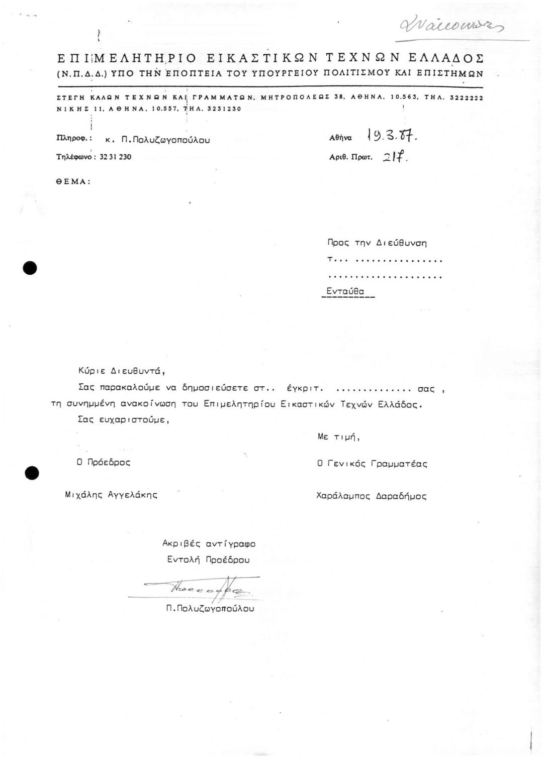 Archive Of The Chamber Of Fine Arts Of Greece