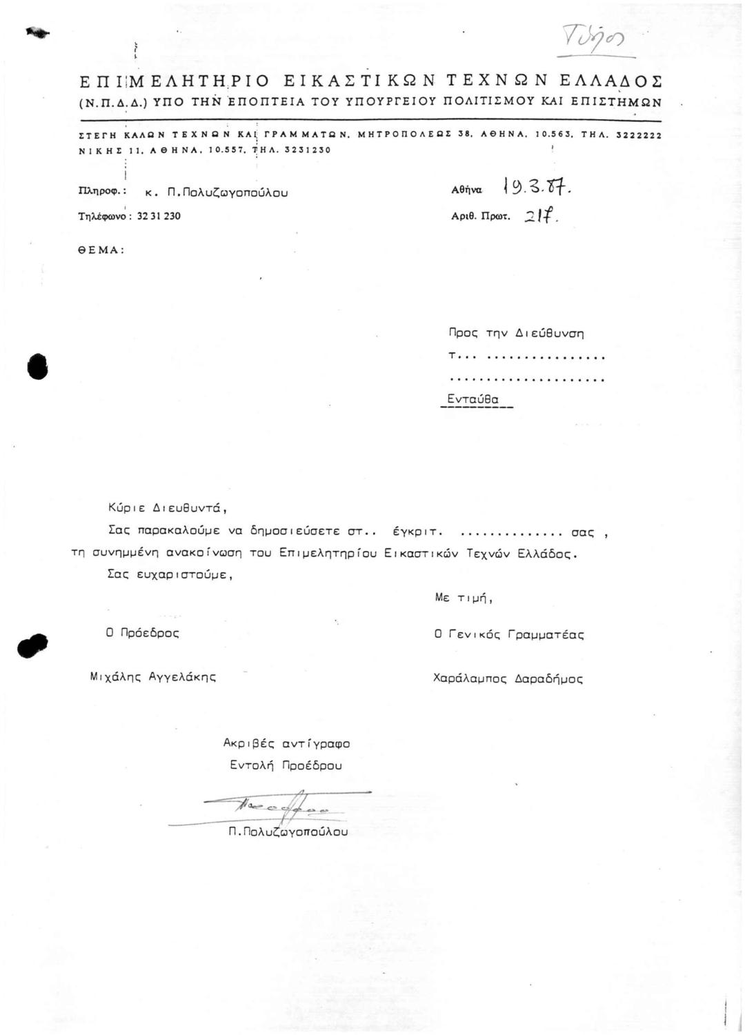 Archive Of The Chamber Of Fine Arts Of Greece