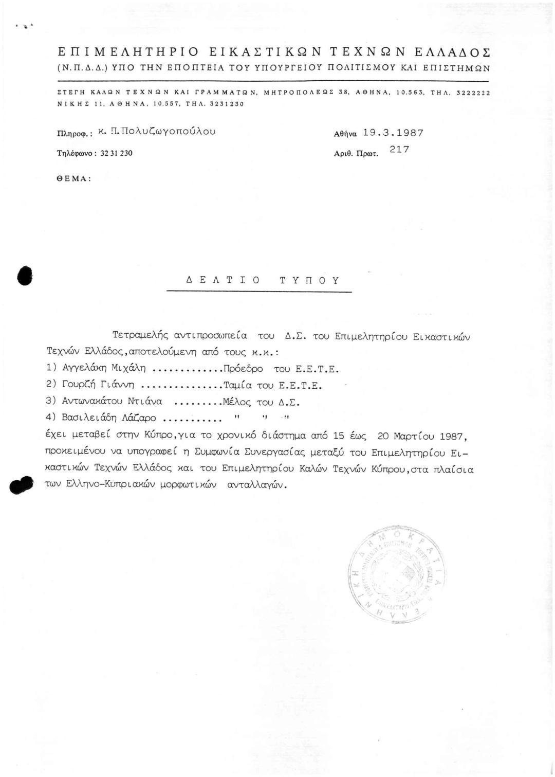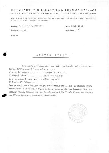 Περί Συμφωνίας Συνεργασίας Επιμελητηρίου Καλών Τεχνών Κύπρου -ΕΕΤΕ