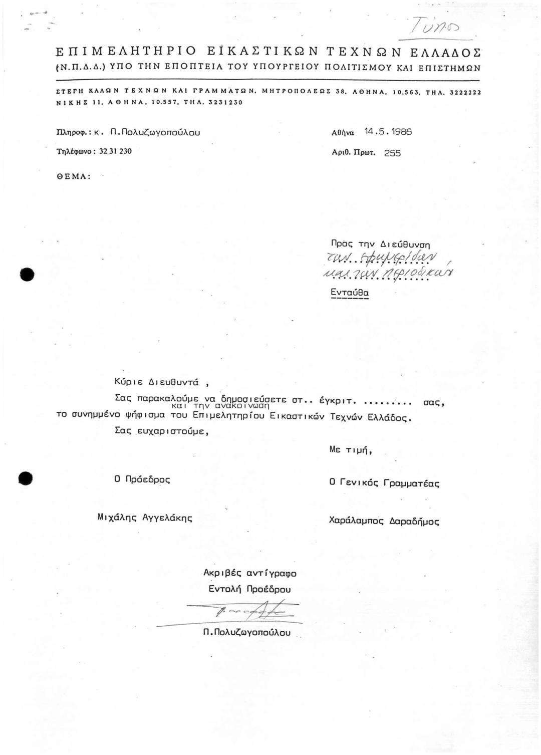 Archive Of The Chamber Of Fine Arts Of Greece