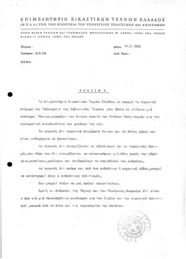 Περι Πυρηνικού Ατυχήματος του Τσέρνομπιλ της Σοβιετικής Ένωσης