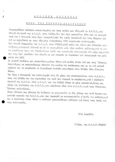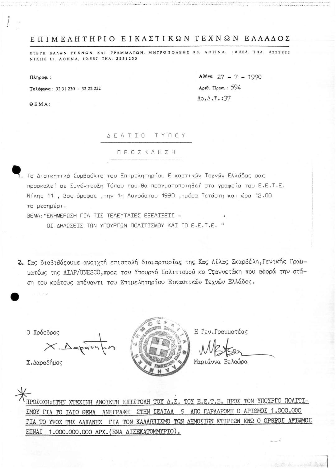 Ενημέρωση για τις Τελευταίες Εξελίξεις, οι Δηλώσεις των Υπουργών Πολιτισμού και το ΕΕΤΕ - Ανοιχτή Επιστολή Διαμαρτυρίας της Γενικής Γραμματέως της A.I.A.P/UNESCO