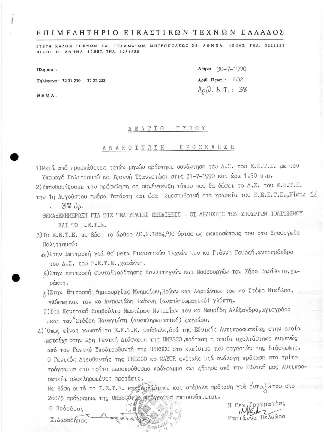 Συνάντηση με τον Υπουργό Πολιτισμού Τζαννή Τζαννετάκη - Πρόσκληση σε Συνένευξη Τύπου