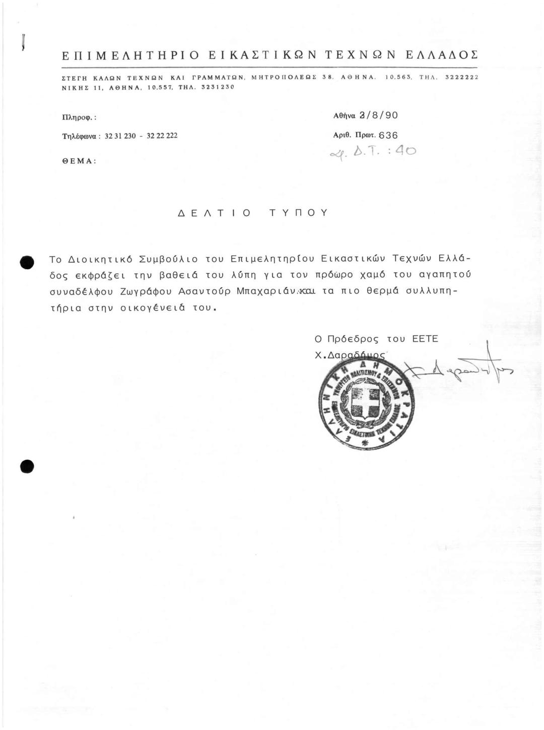 Archive Of The Chamber Of Fine Arts Of Greece