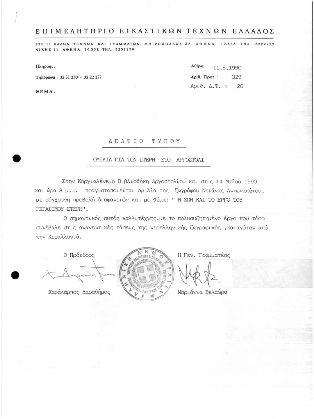 Ομιλία για την Ζωή και το Έργο του Γεράσιμου Στέρη στο Αργοστόλι