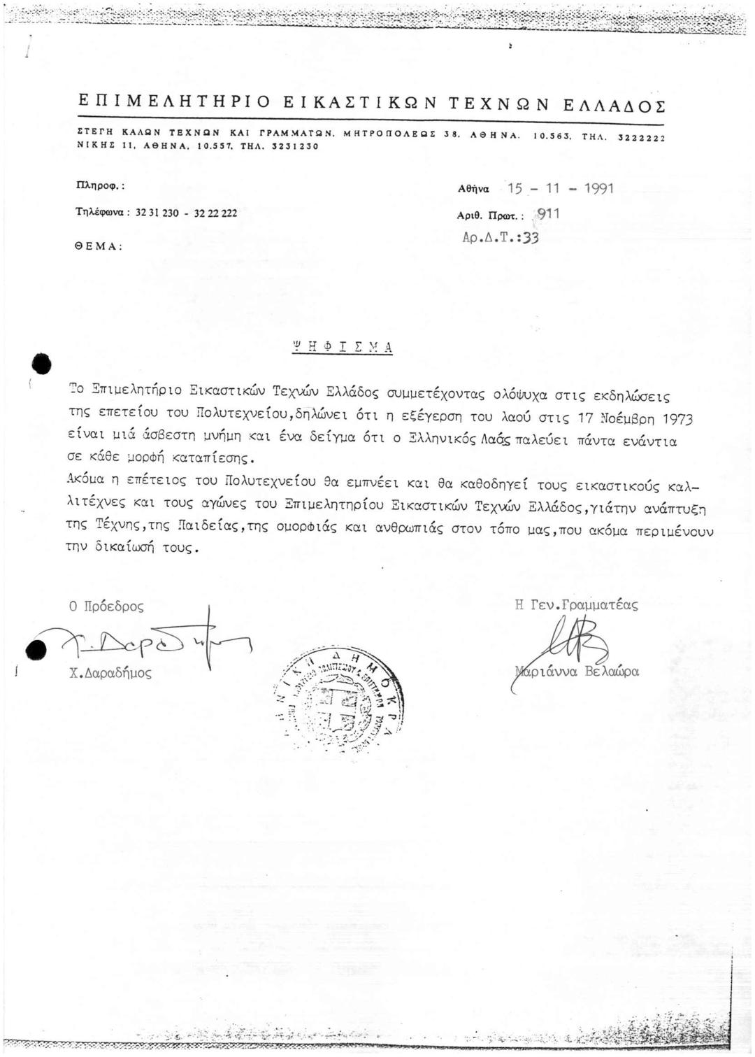 Ψήφισμα Συμμετοχής ΕΕΤΕ στις Εκδηλώσεις Επετείου του Πολυτεχνείου