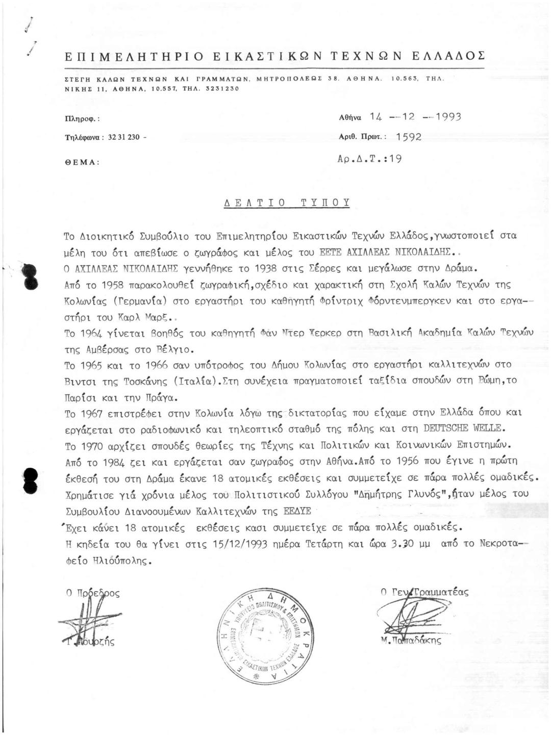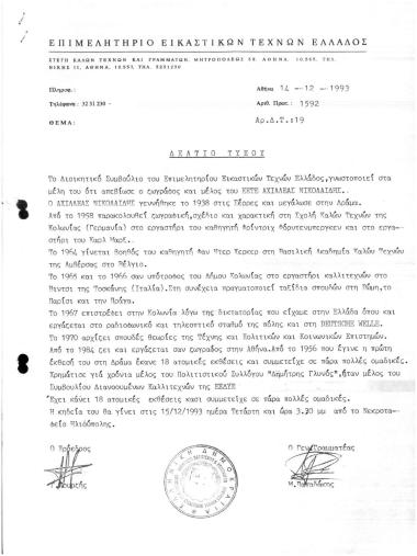 Απεβίωσε ο Ζωγράφος και Μέλος του ΕΕΤΕ Αχιλλέας Νικολαϊδης