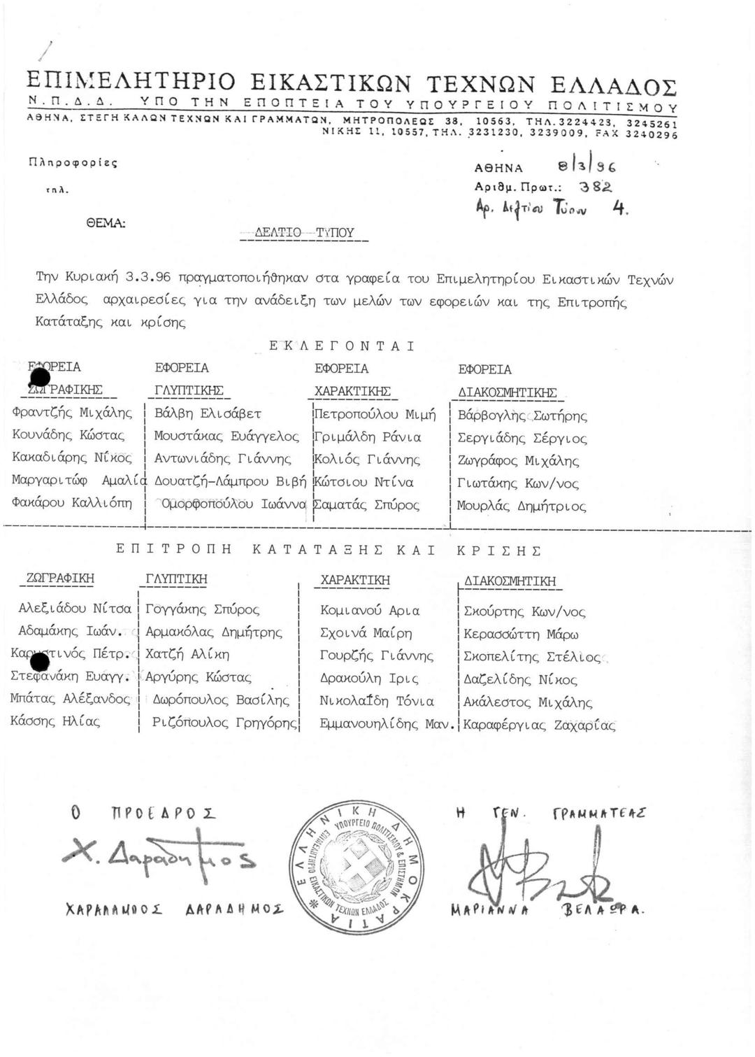 Archive Of The Chamber Of Fine Arts Of Greece