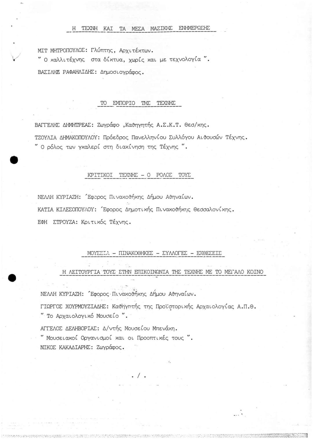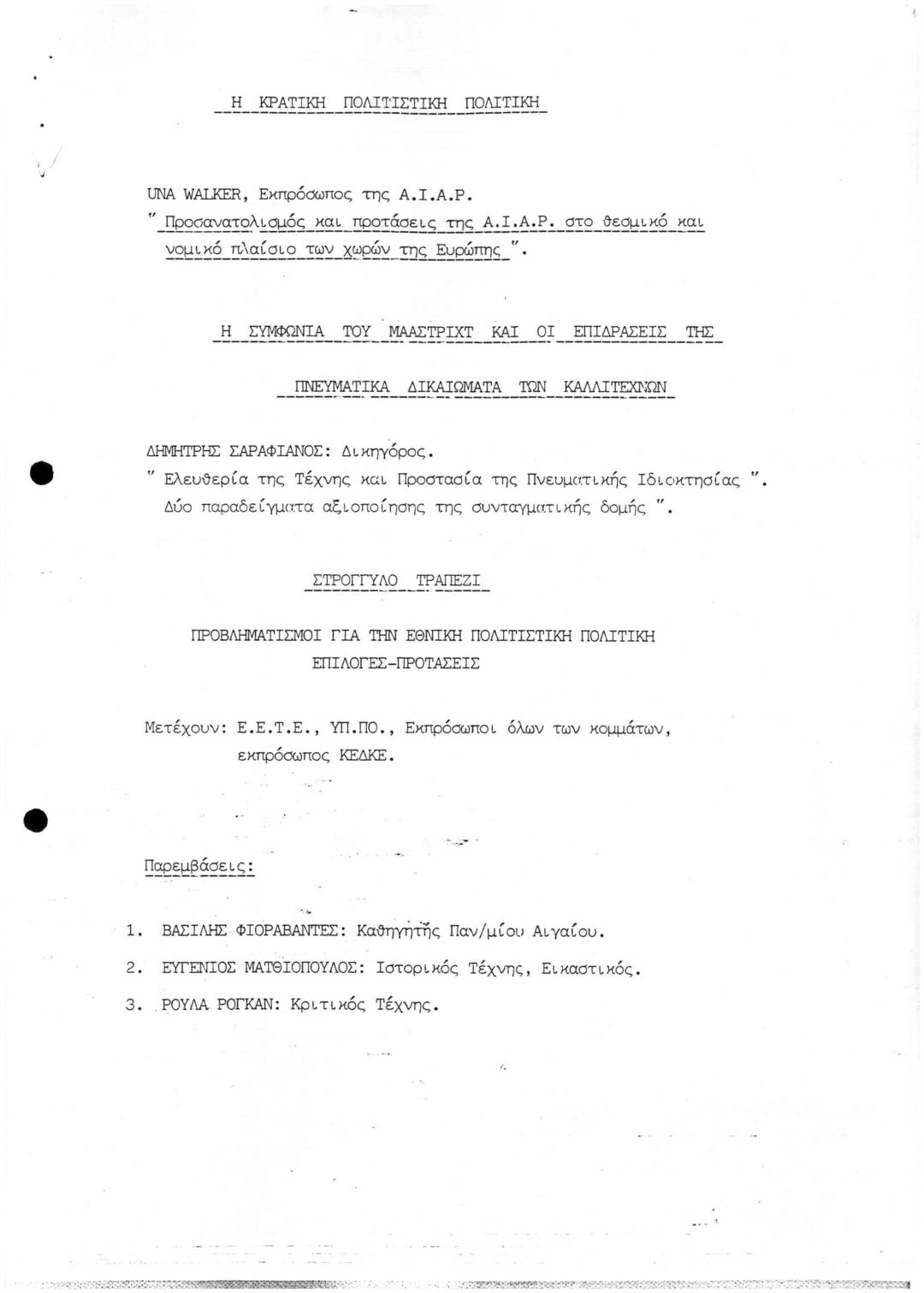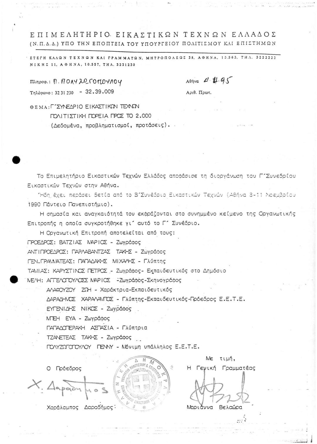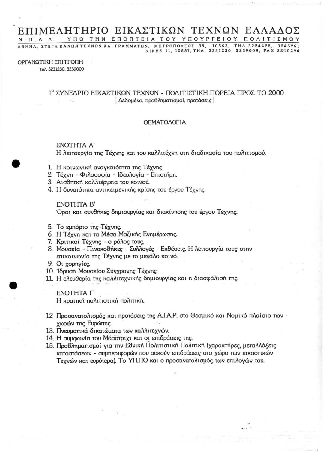 Γ' Συνέδριο Εικαστικών Τεχνών Πολιτιστική Πορεία προς το 2000 (Δεδομένα, Προβληματισμοί, Προτάσεις)