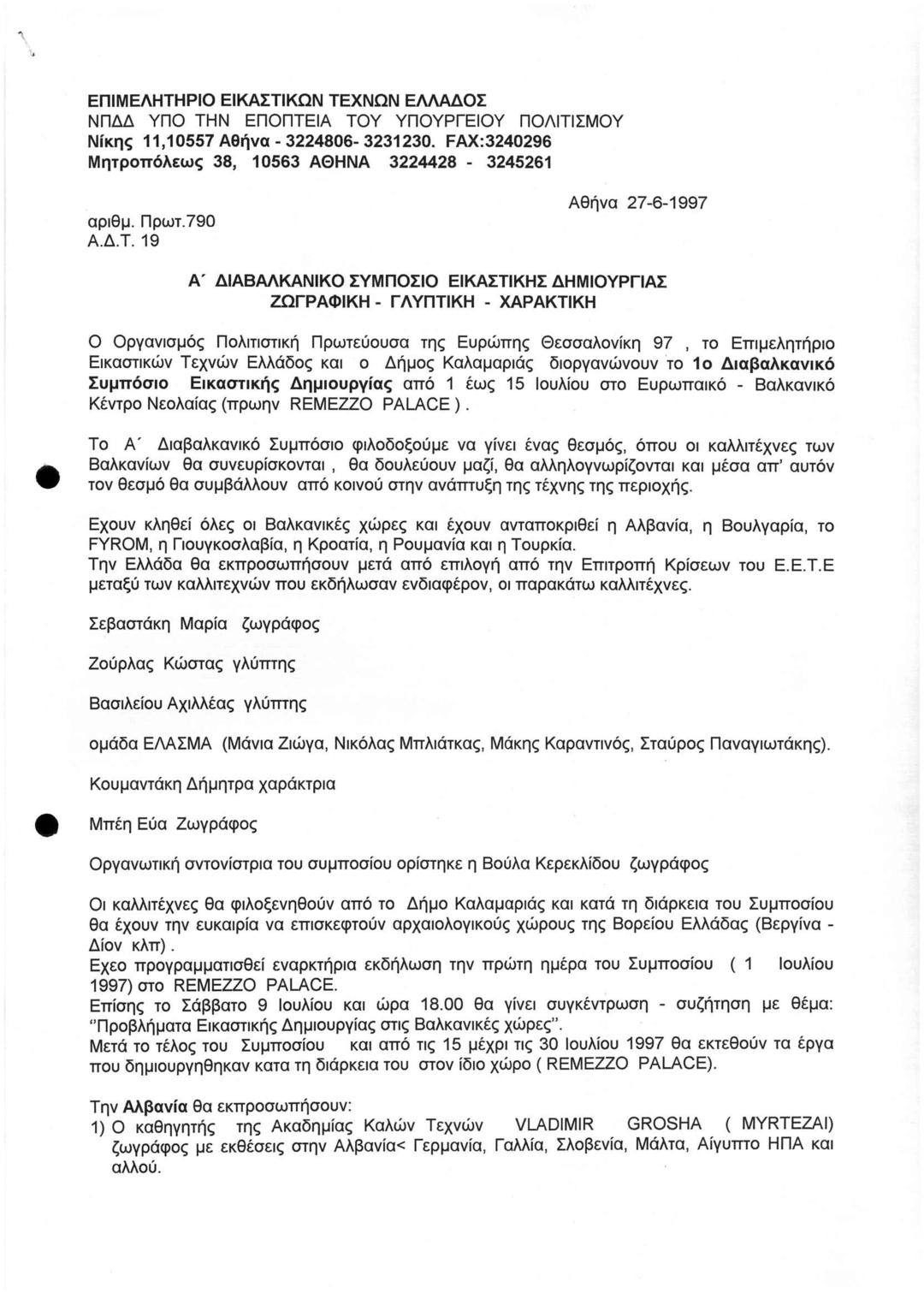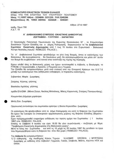 Α' Διαβαλκανικό Συμπόσιο Εικαστικής Δημιουργίας Ζωγτραφική - Χαρακτική - Γλυπτική