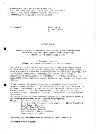 Εγκαίνια Έκθεσης "Πρόσωπο με Πρόσωπο" Αθήνα - Ισταμπούλ