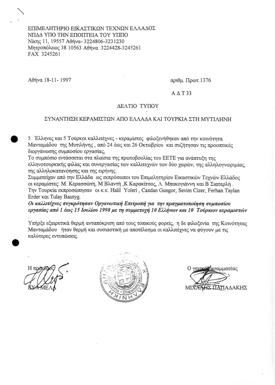 Συνάντηση Κεραμιστών απο Ελλάδα και Τουρκία στην Μυτιλήνη