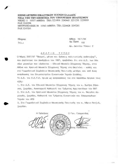 Συμμετοχή Εκπροσώπου ΕΕΤΕ στα ΔΣ των Εθνικού Μουσείου Σύγχρονης Τέχνης - Κρατικό Μουσείο Σύγχρονης Τέχνης Καθώς και στο Γνωμοδοτικό Συμβούλιο Μουσειακής Πολιτικής