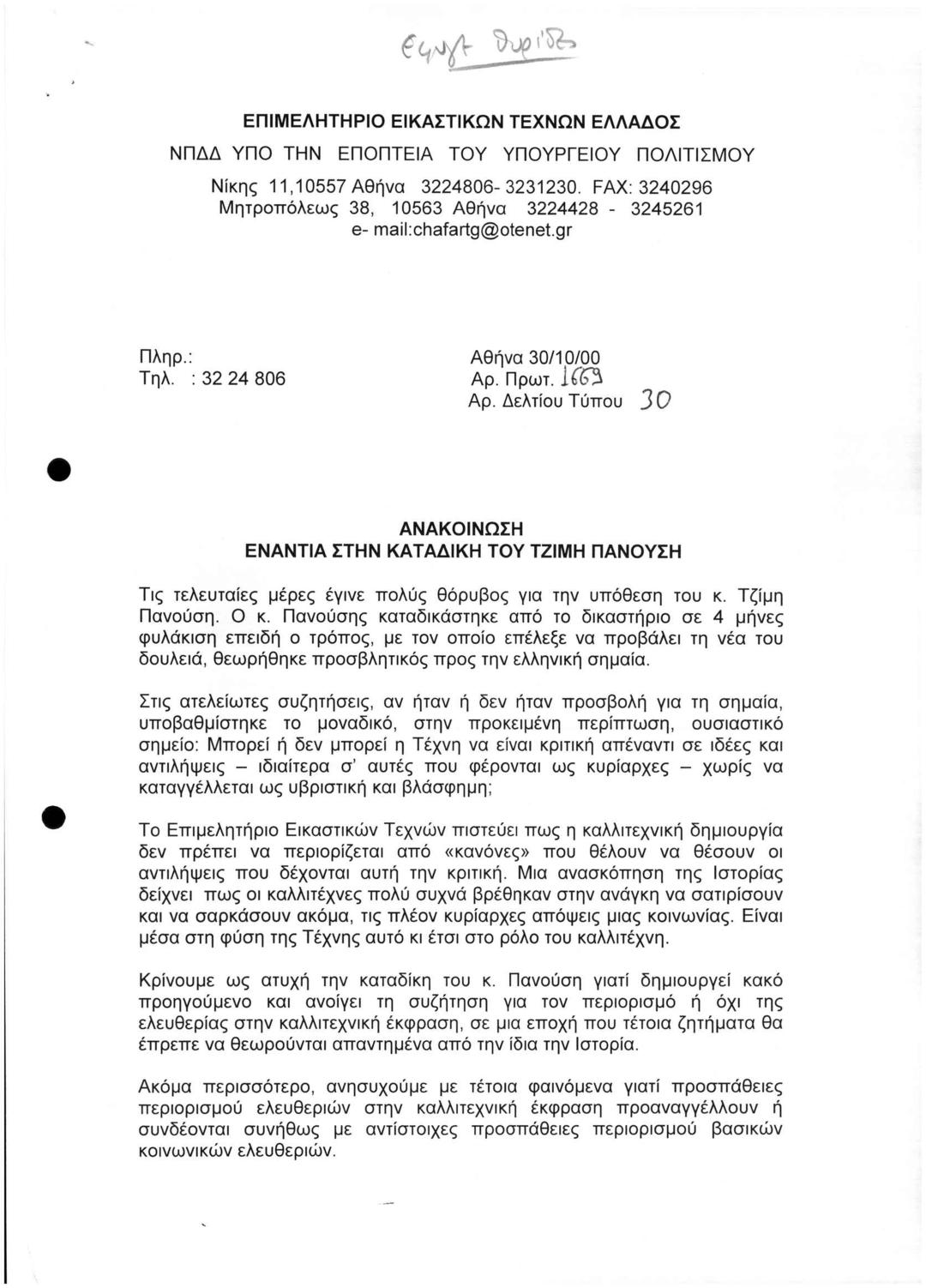 Ανακοίνωση Ενάντια στην Καταδίκη του Τζίμη Πανούση