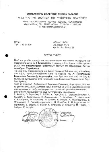Α' Πανελλήνιο Συμπόσιο Καλλιτεχνικής Δημιουργίας - Έκθεση Έργων Καλλιτεχνών Μελών ΕΕΤΕ στο Πολιτιστικό Κέντρο του Δήμου Σαμοθράκης