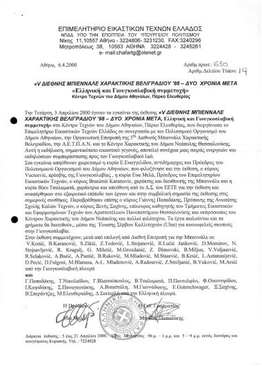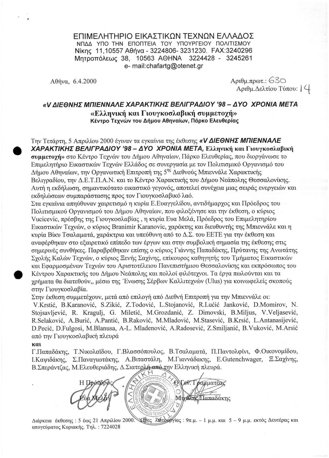 5η Διεθνής Μπιεννάλε Χαρακτικής Βελιγραδίου '98 - Δυο Χρόνια Μετά "Ελληνική και Γιουγκοσλάβικη Συμμετοχή"