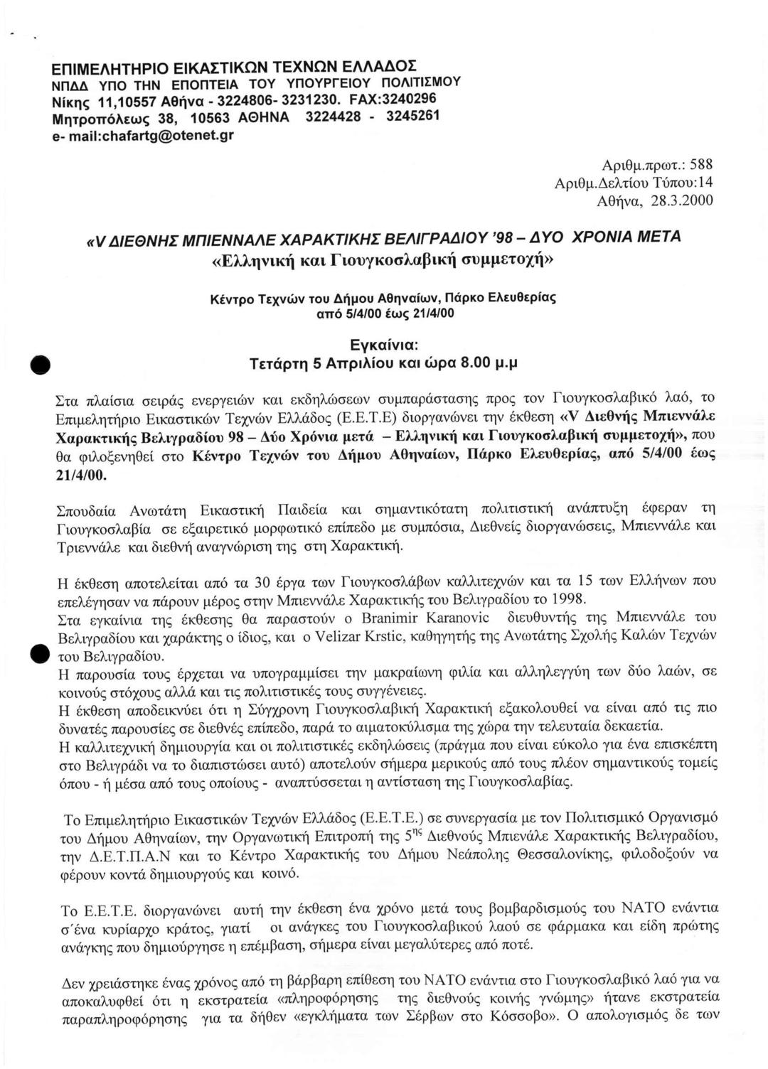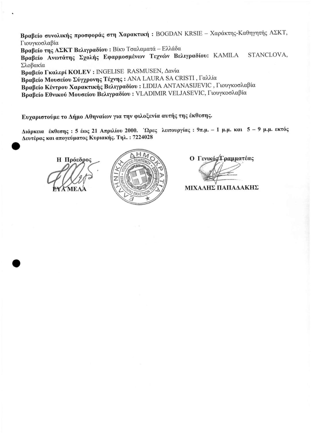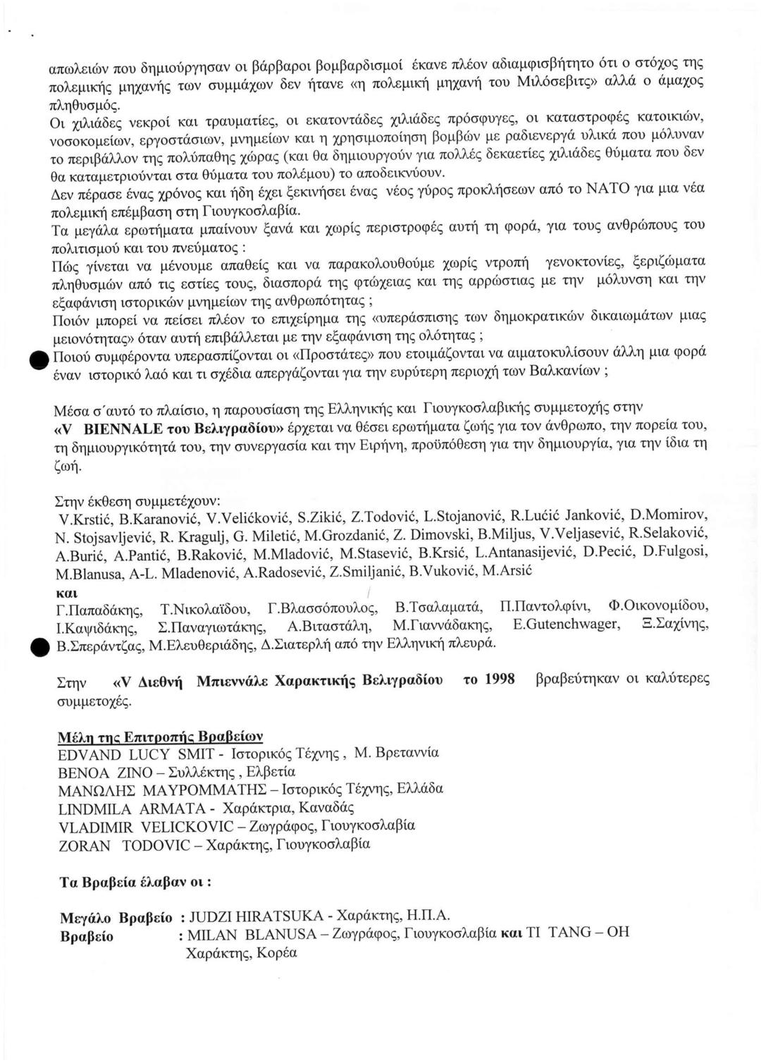 5η Διεθνής Μπιεννάλε Χαρακτικής Βελιγραδίου '98 - Δυο Χρόνια Μετά "Ελληνική και Γιουγκοσλάβικη Συμμετοχή"