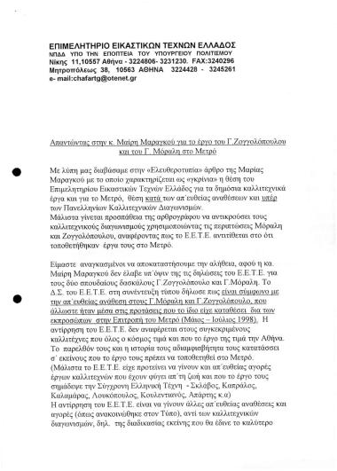 Απαντώντας στην κ. Μαίρη Μαραγκού για το Έργο του Γ. Ζογγολόπουλου και του Γ. Μόραλη στο Μετρό