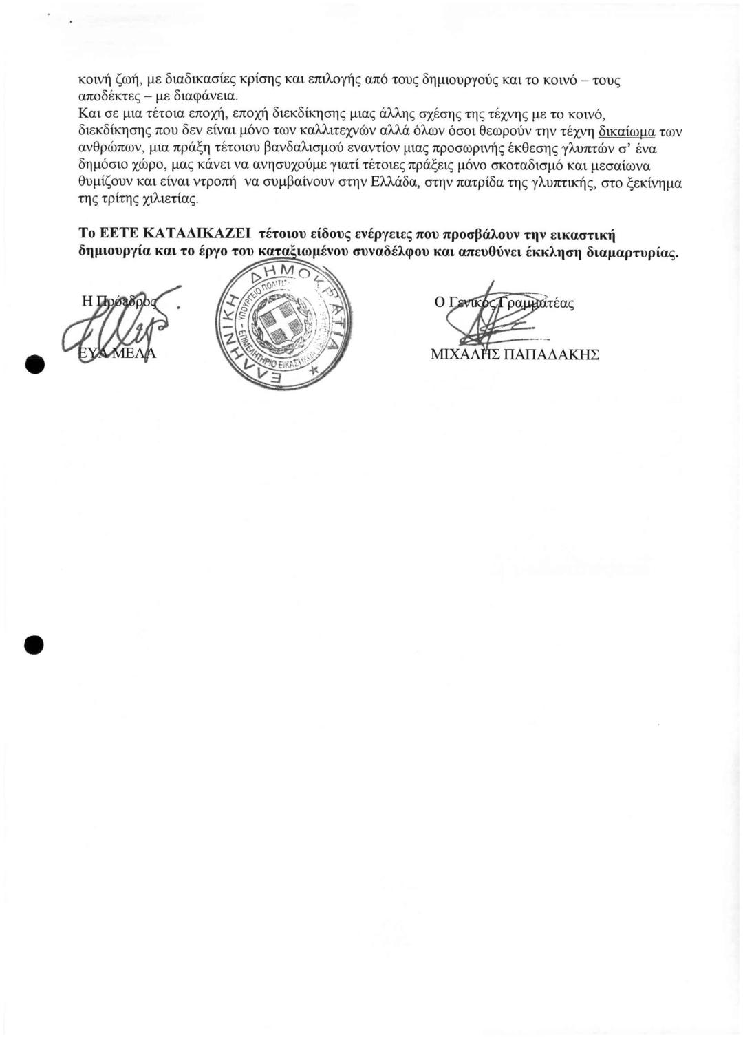 Βανδαλισμοί Εναντίον των Έργων του Γλύπτη Παρμακέλη