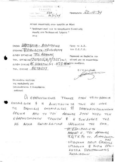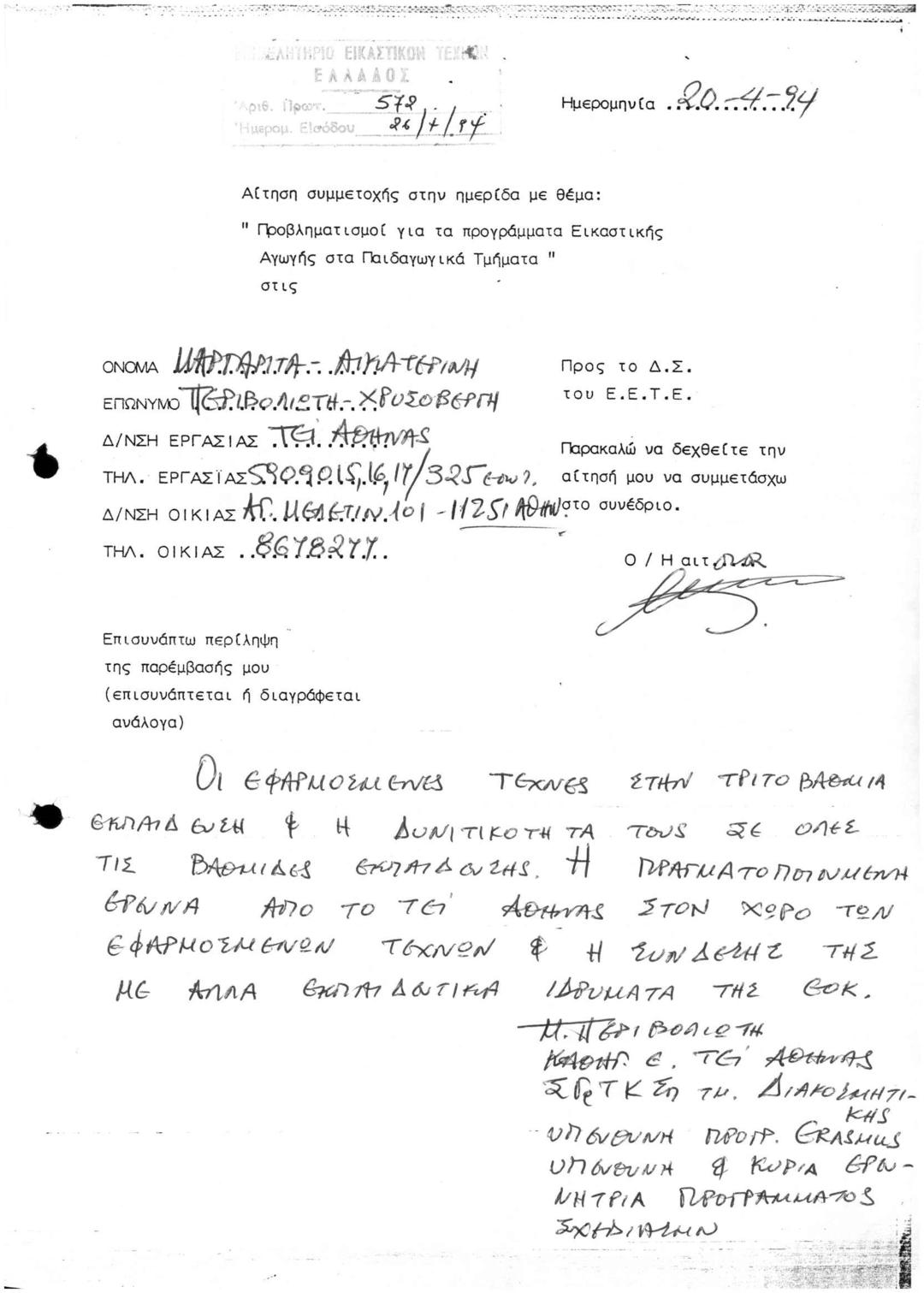 Αιτήση Συμμετοχής στην Ημερίδα με Θέμα "Προγράμματα Κατάρτησης των Φοιτητών των Παιδαγωγικών Τμημάτων στην Εικαστική Αγωγή"