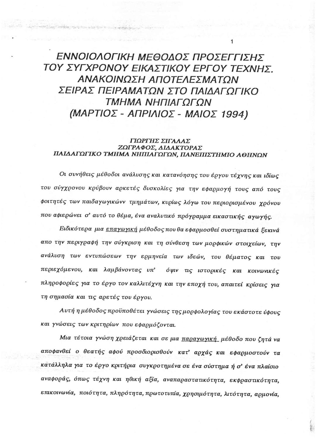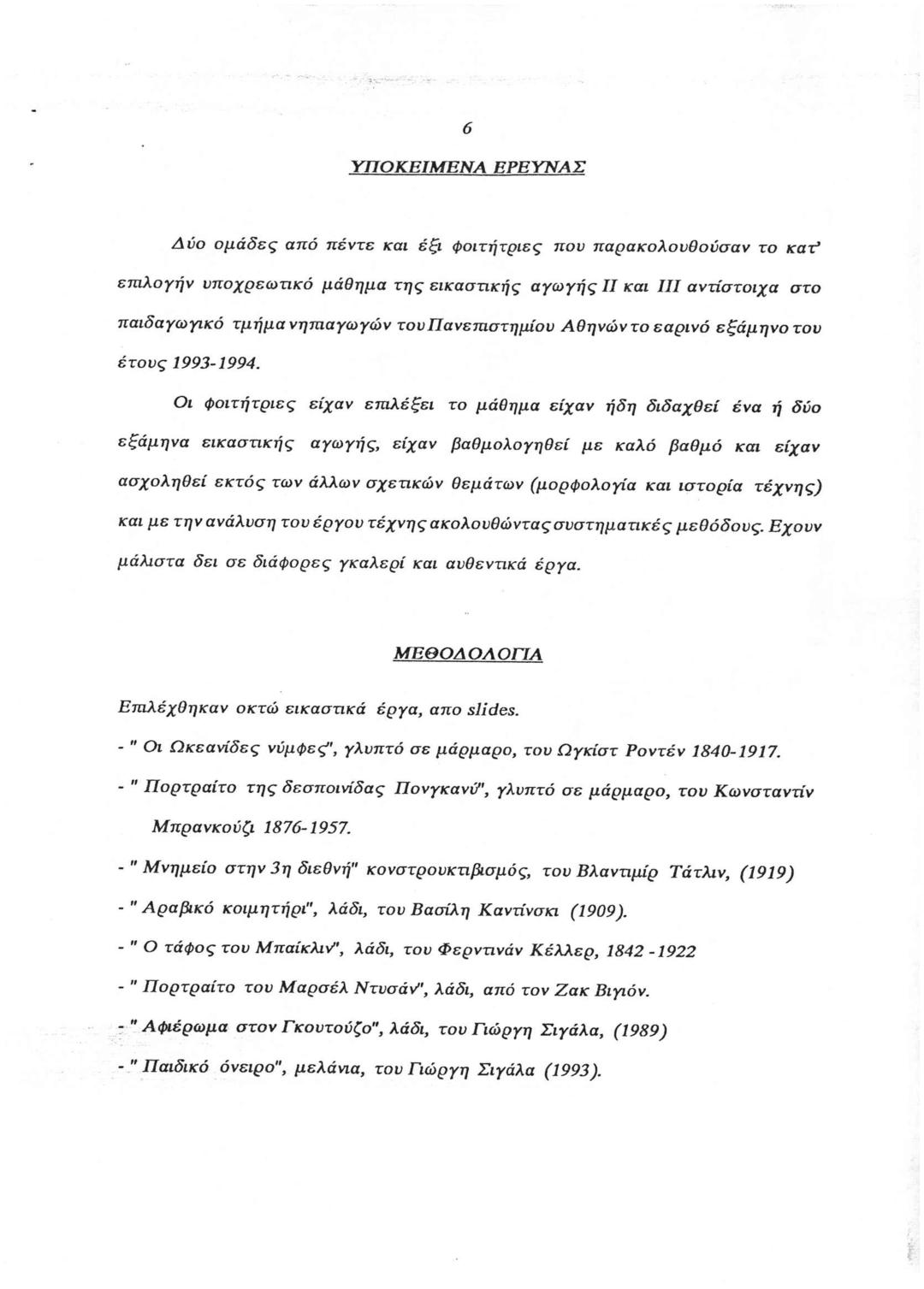 Διήμερο Συνέδριο "Προβληματισμοί για τα Προγράμματα Εικαστικής Αγωγής στα Παιδαγωγικά Τμήματα των Πανεπιστημίων": Τέχνη, Διδακτική της Τέχνης για το Νηπιαγωγείο, Εφαρμογή στο Νηπιαγωγείο