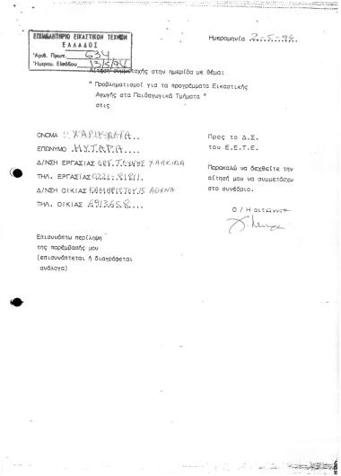 Αιτήση Συμμετοχής στην Ημερίδα με Θέμα "Προγράμματα Κατάρτησης των Φοιτητών των Παιδαγωγικών Τμημάτων στην Εικαστική Αγωγή"