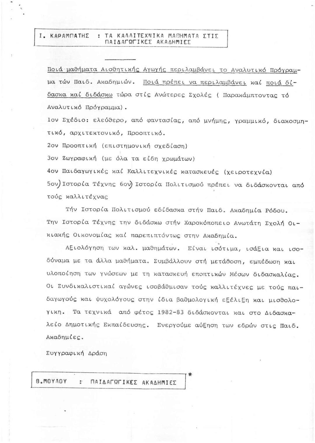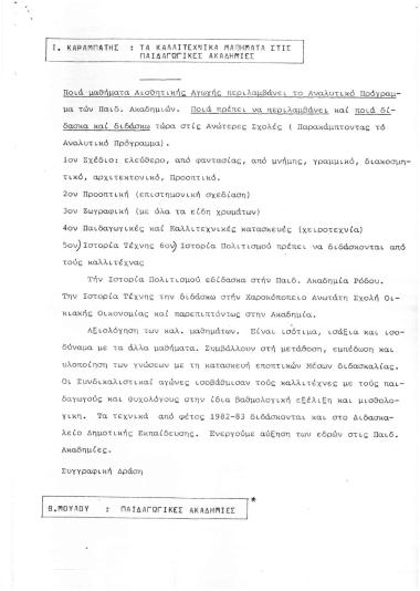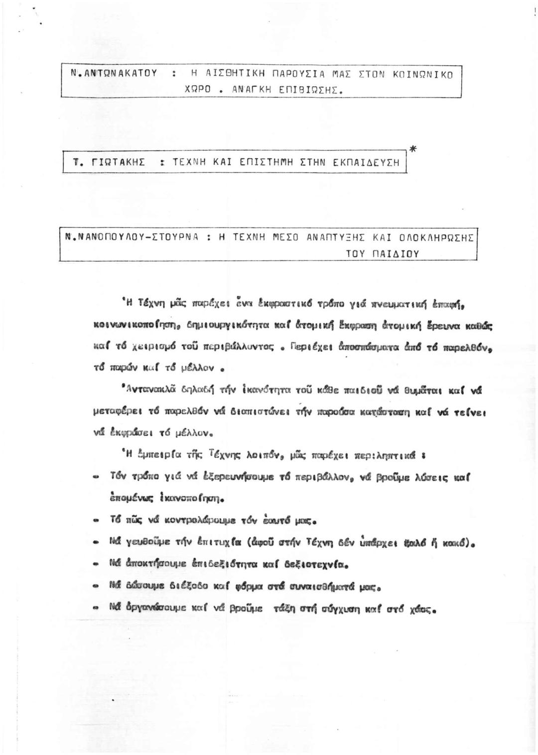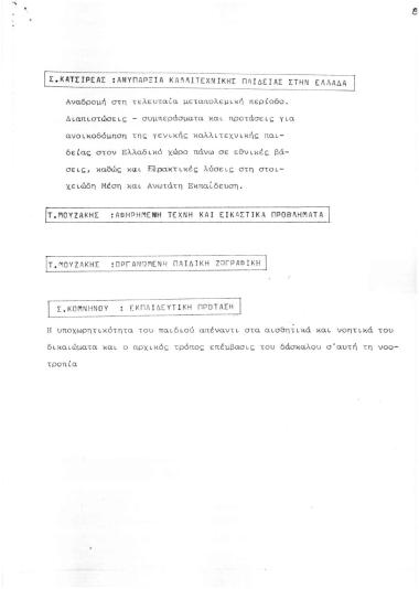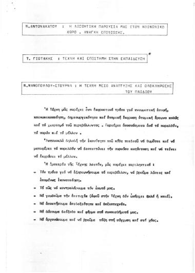 Α Συνέδριο Καλλιτεχνικής Παιδείας: Περιλήψεις Εισηγήσεων