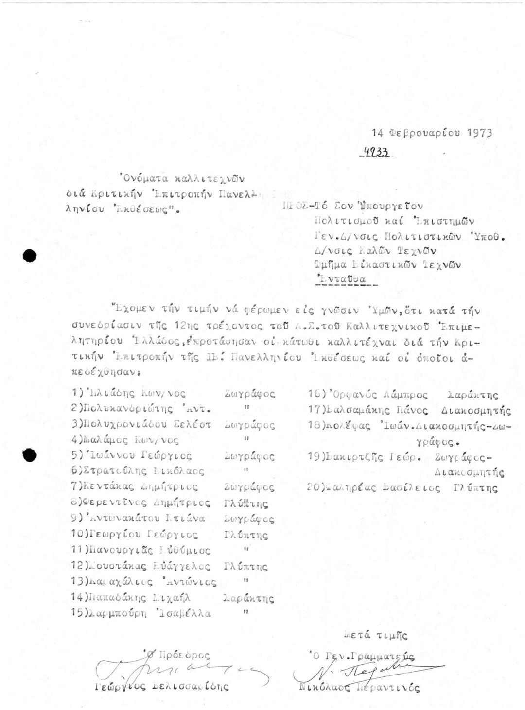 Ονόματα Καλλιτεχνών για Κριτική Επιτροπή Παννελήνιας Έκθεσης