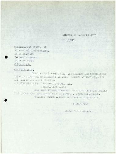 Περι Συμμετοχής Ελλήνων Καλλιτεχνών σε Διεθνή Έκθεση στη Γαλλία