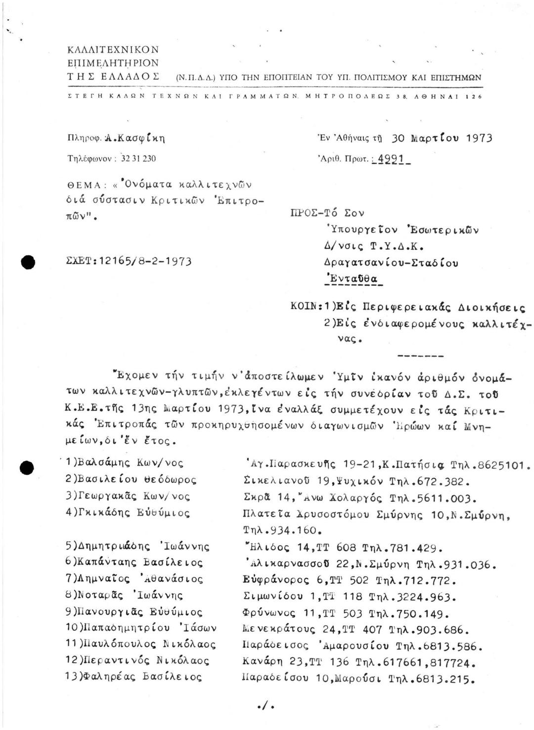 Ονόματα Καλλιτεχνών για Σύσταση Κριτικών Επιτροπών