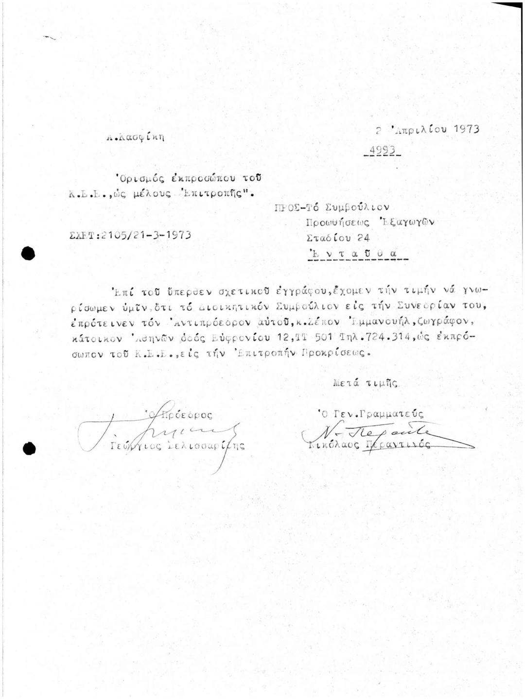 Ορισμός Εκπροσώπου του ΚΕΕ ως Μέλους Επιτροπής
