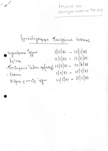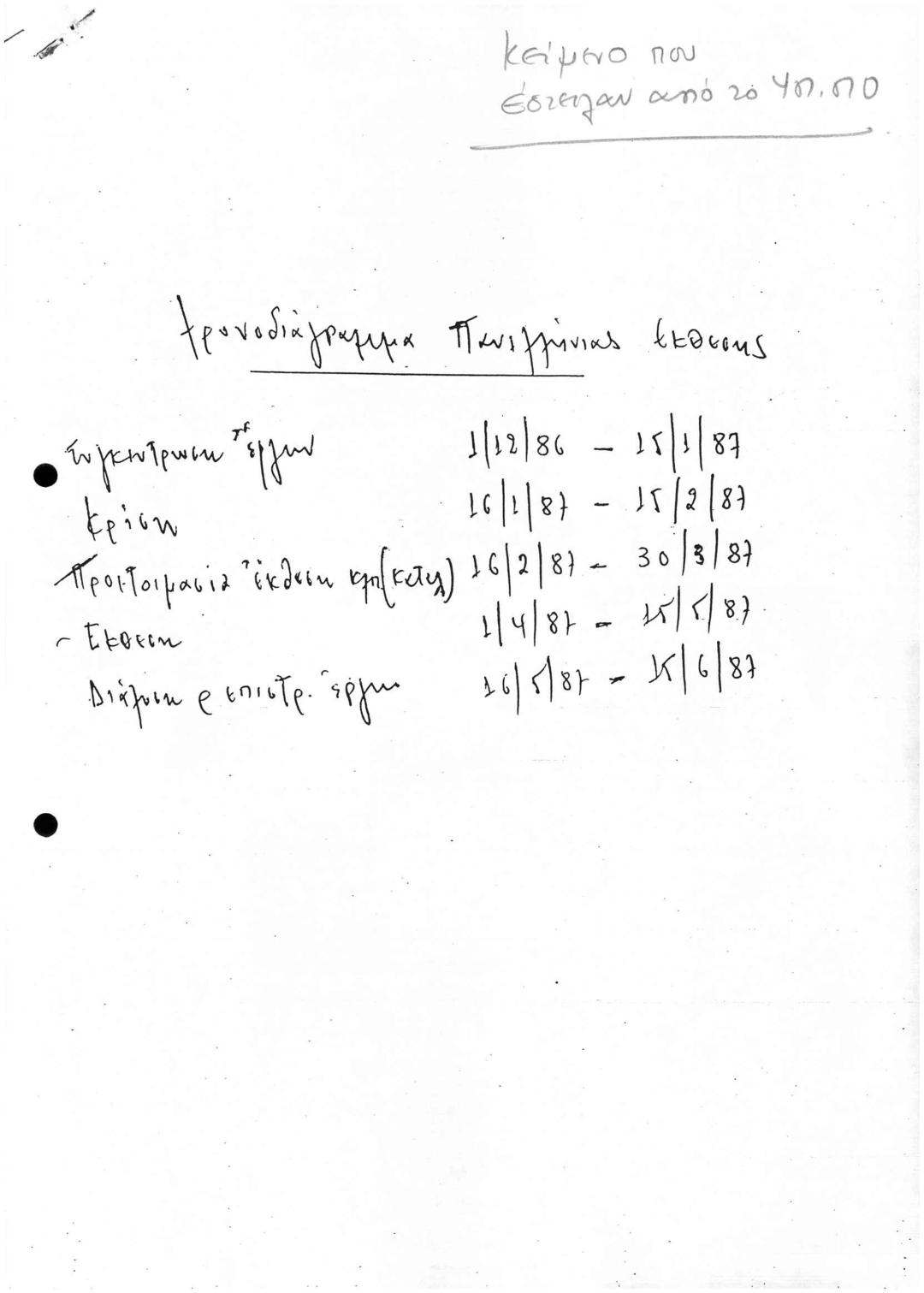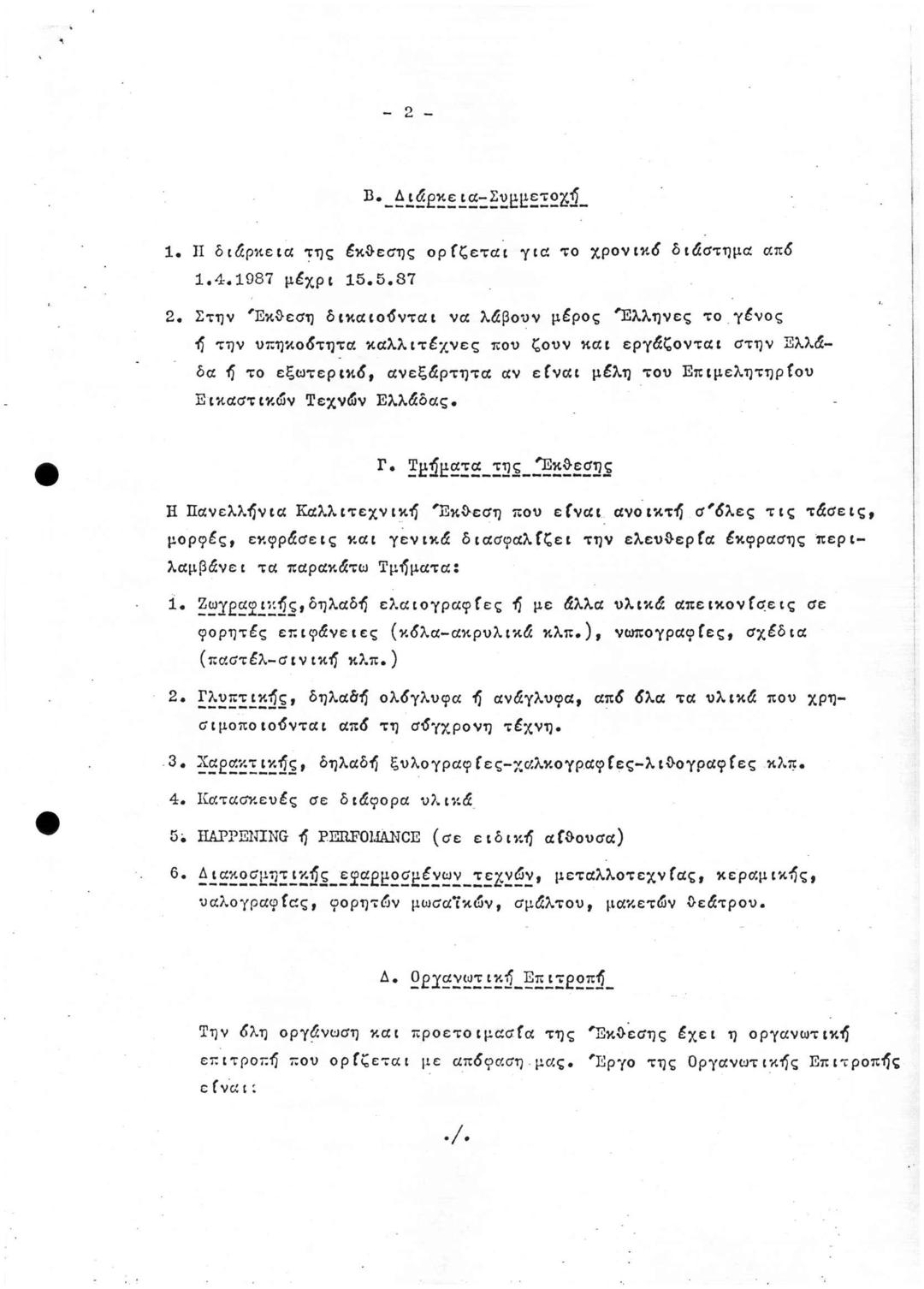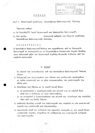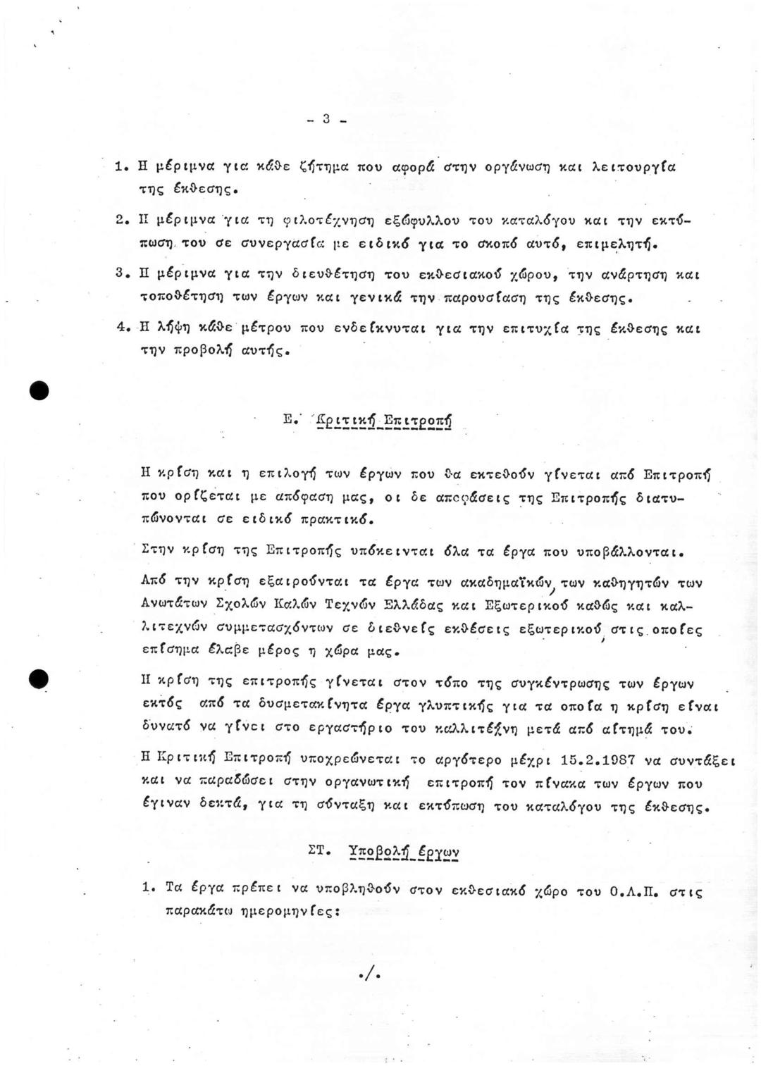 Πανελλήνια Έκθεση 1987/Ντοσιέ Π3: Χρονοδιαγραμμα Πανελλήνιας Έκθεσης και ΣΧΕΔΙΟ Περί: Κανονισμού Οργάνωσης Πανελλήνιας Καλλιτεχνικής Έκθεσης