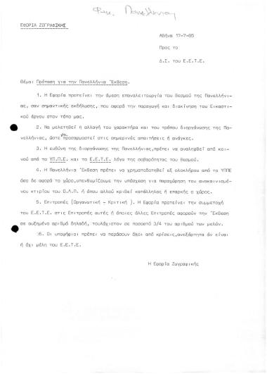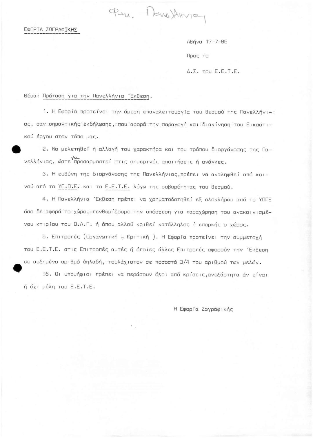 ΕΦΟΡΙΑ ΖΩΓΡΑΦΙΚΗΣ/Πρόταση για την Πανελλήνια Έκθεση: Πανελλήνια Έκθεση 1987/Ντοσιέ Π3