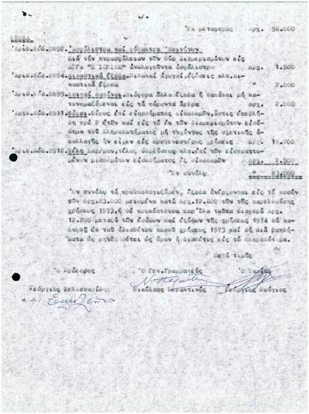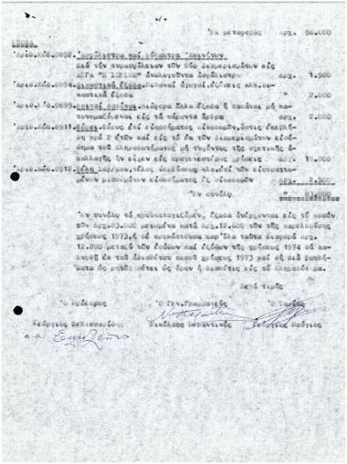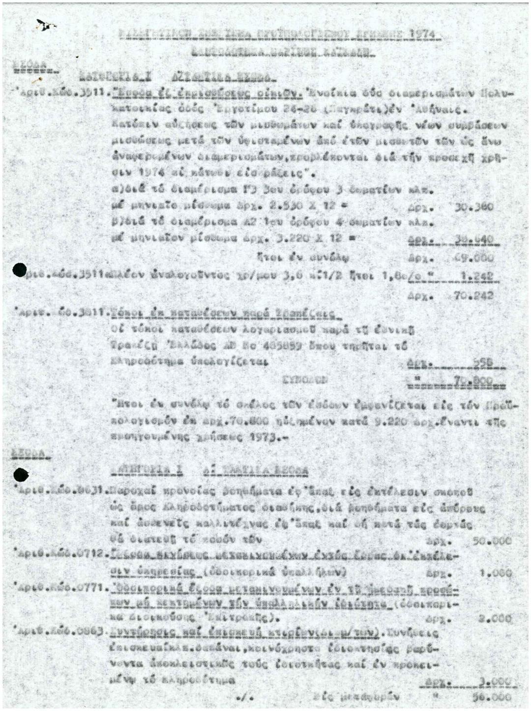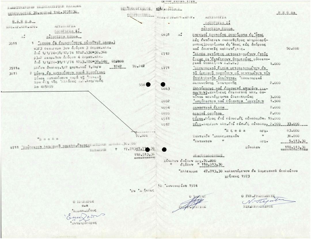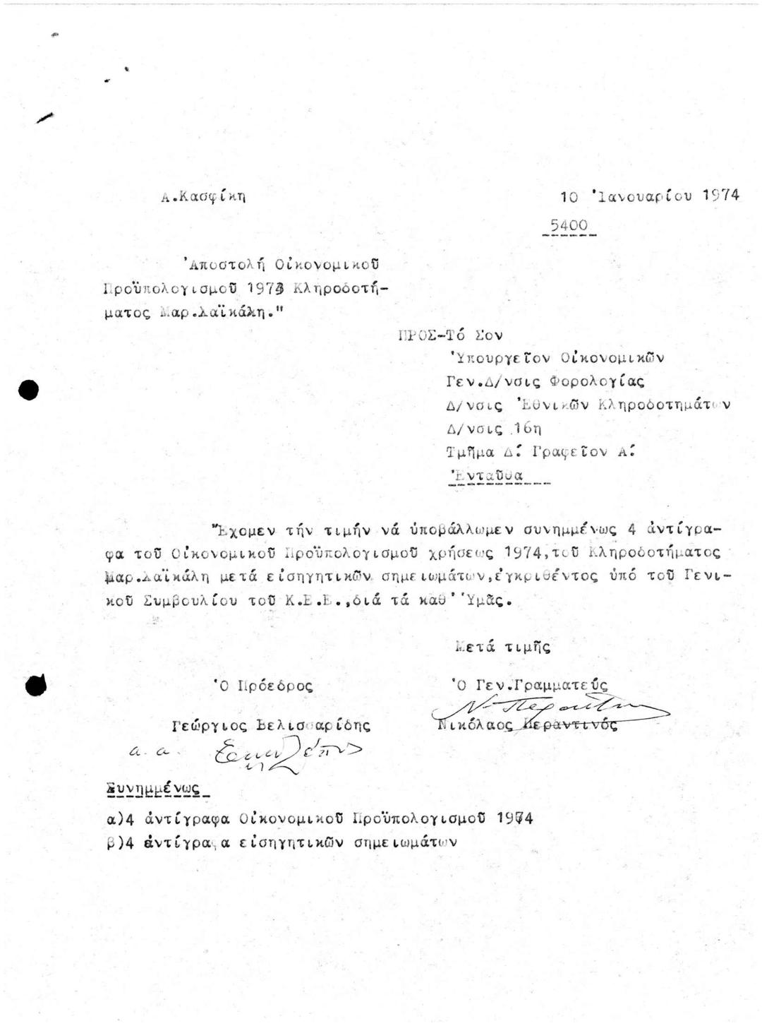 Αποπστολή Οικονομικού Προϋπολογισμού Κληροδοτήματος Μαρίνας Χαϊκάλη Έτους 1973