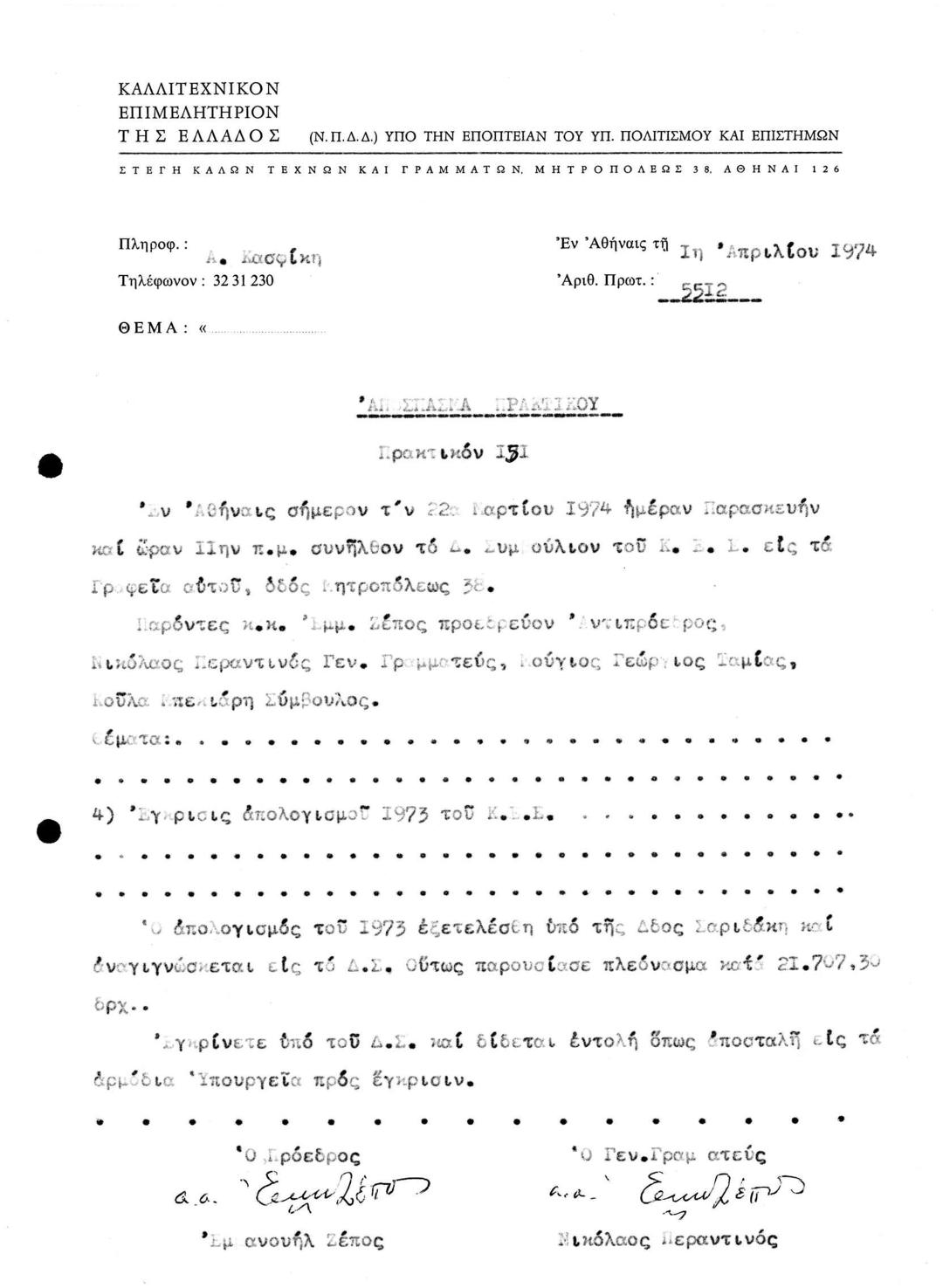 Έγκριση Απολογισμού 1973 του ΚΕΕ