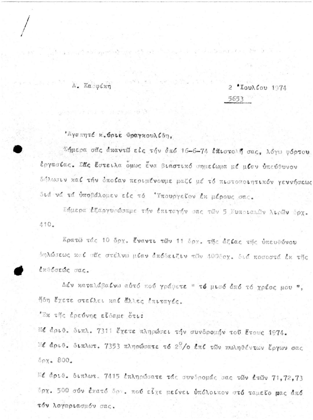 Αλληλογραφία με Μέλος του ΚΕΕ