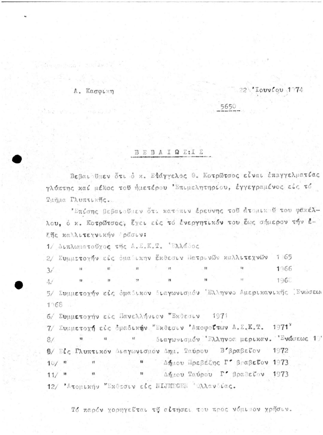 Βεβαίωση Μέλους του ΚΕΕ Επαγγελματία Γλύπτη
