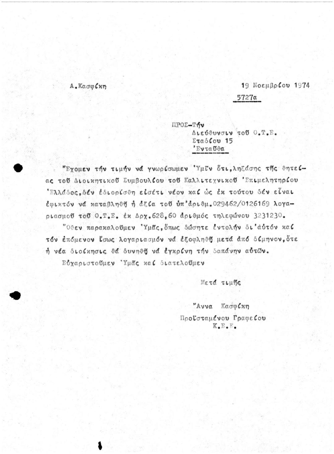 Περι μη Δυνατότητας Καταβολής της Αξίας Λογαριασμού του ΟΤΕ λόγο Λήξης Θητείας ΔΣ του ΚΕΕ