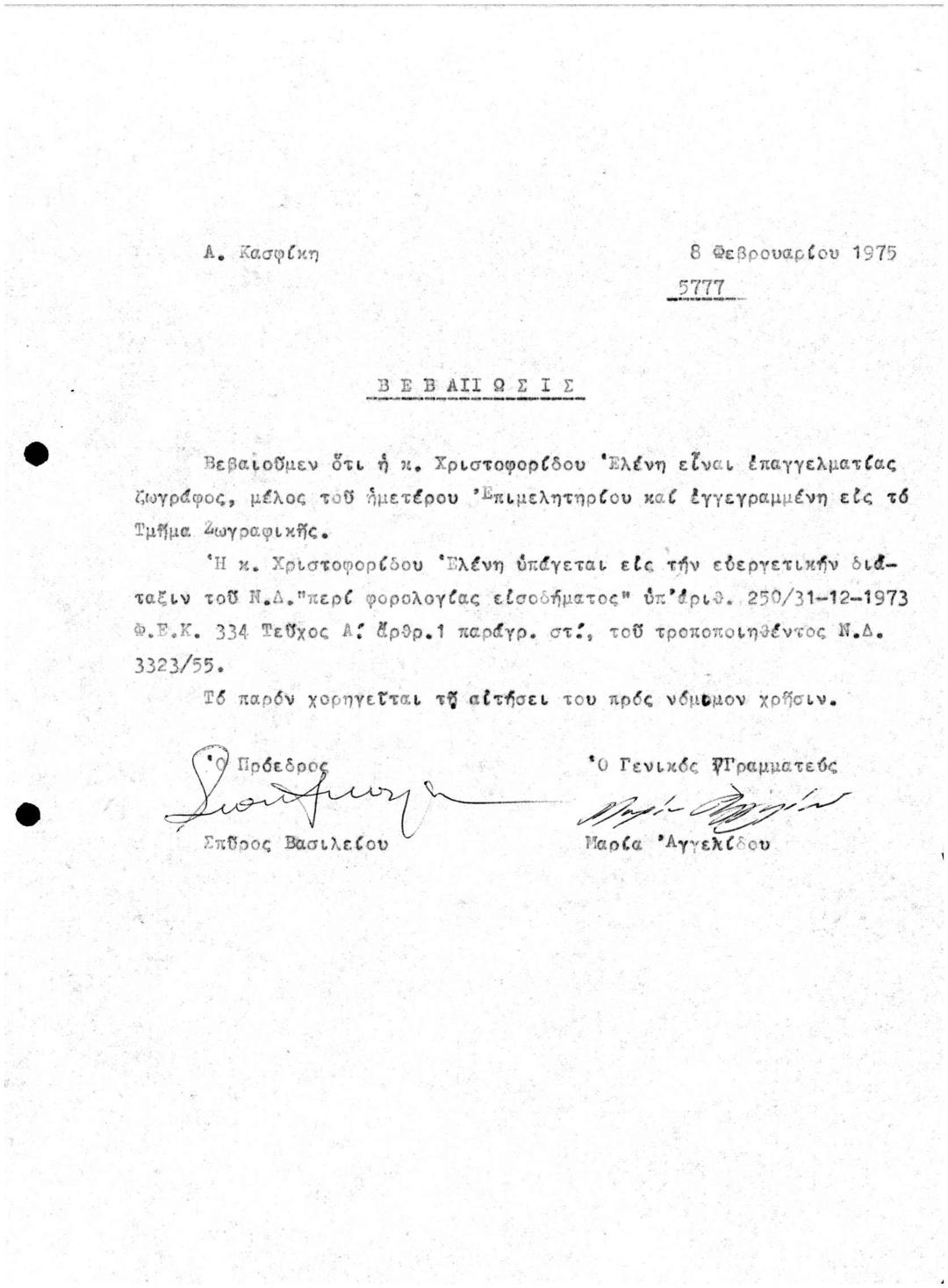 Βεβαίωση Μέλους ΚΕΕ - Επαγγελματία Ζωγράφου