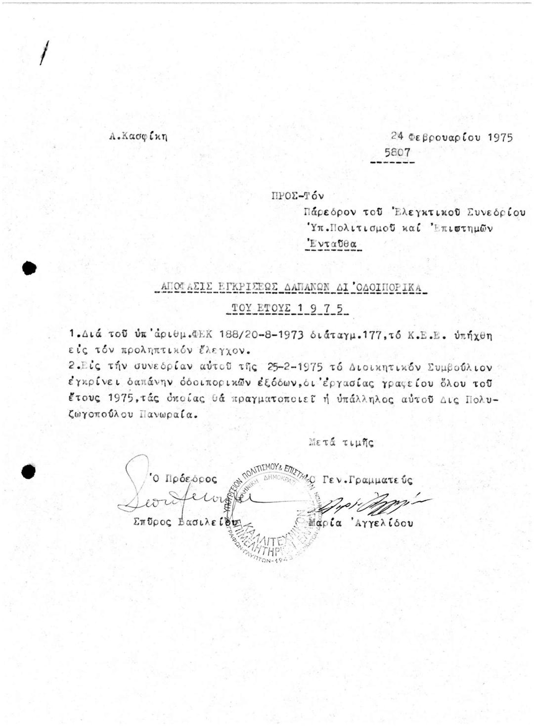 Απόφαση Εγκρίσεως Δαπανών για Οδοιπορικά