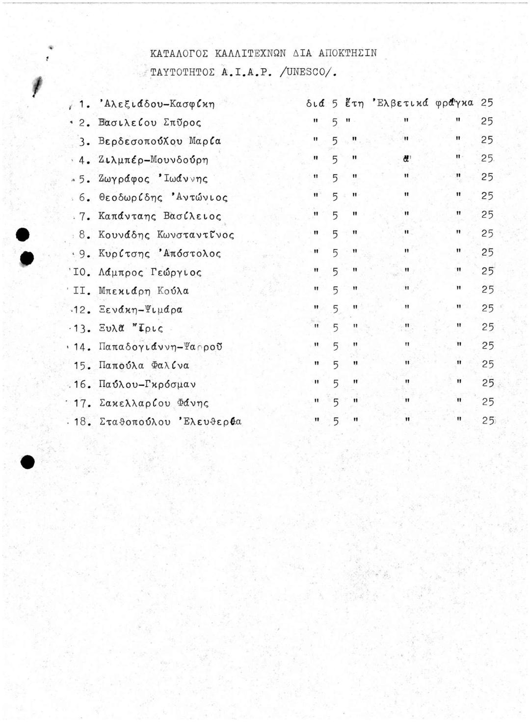 Κατάλογος Καλλιτεχνών για την απόκτηση Ταυτότητας A.I.A.P