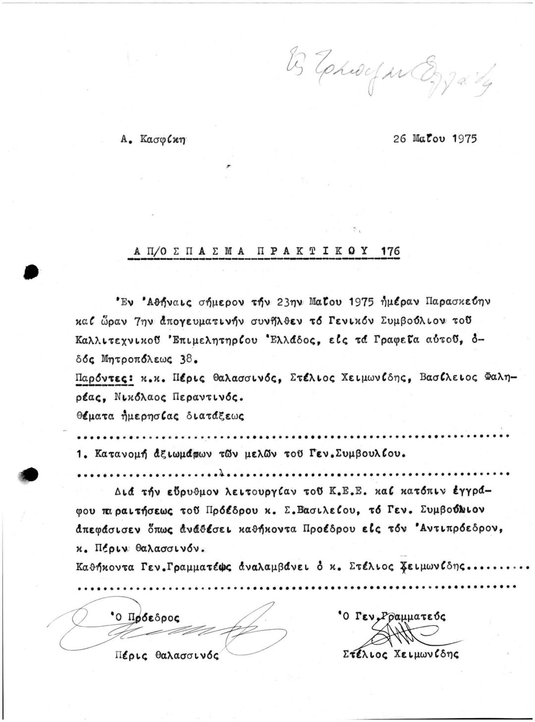 Περι Ανάθεσης Καθηκόντων Προέδρου και Γενικού Γραμματέα του ΚΕΕ