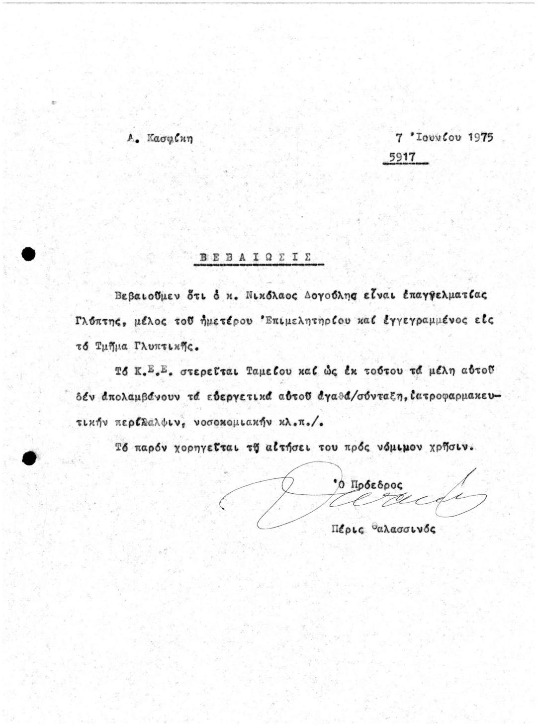 Βεβαίωση Μέλους ΚΕΕ Επαγγελματία Γλύπτη
