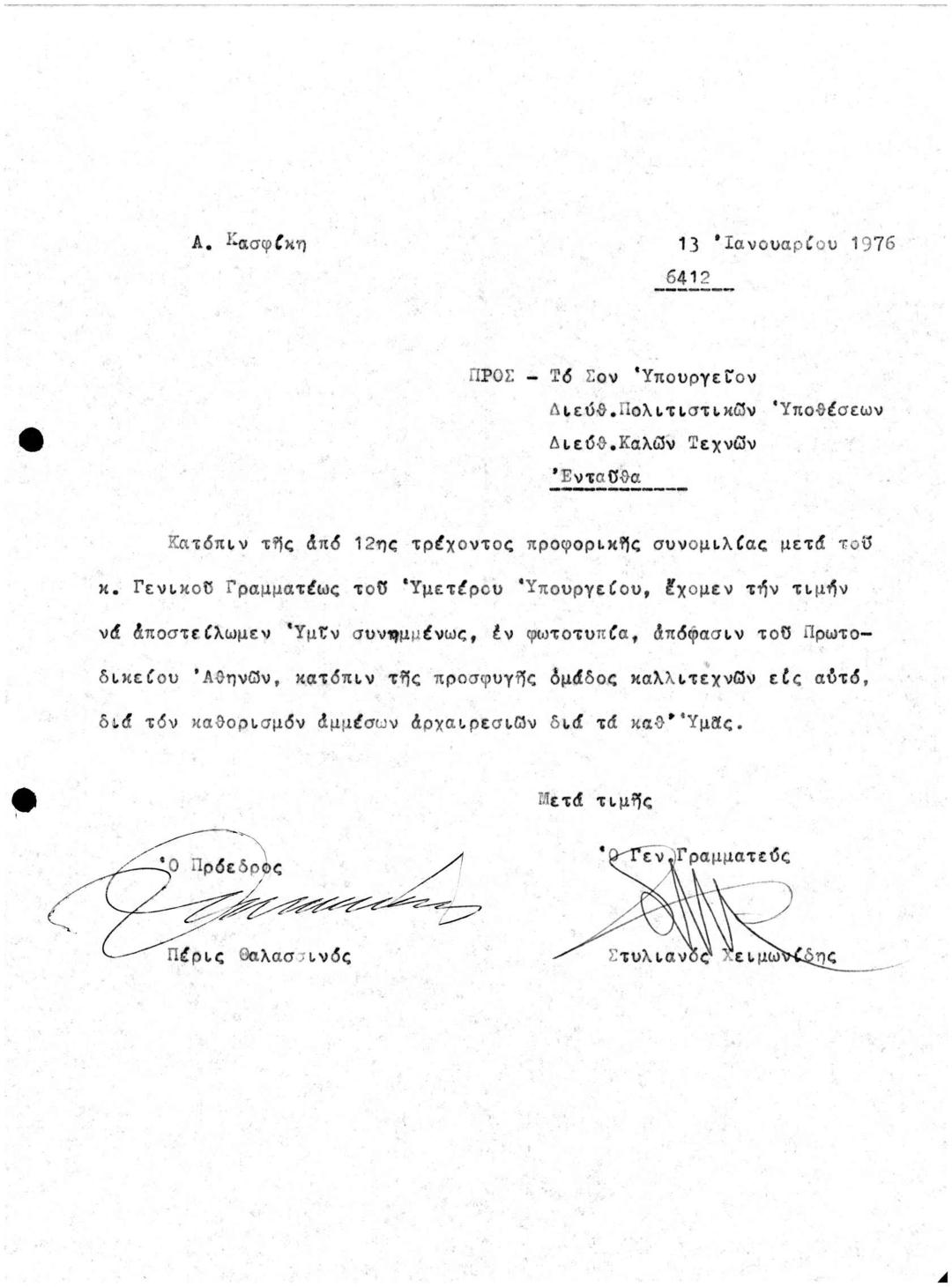 Περι Αποστολής Απόφασης Πρωτοδικείου Αθηνών Κατόπιν Προσφυγής Καλλιτεχνών για τον Καθορισμό Άμεσων Αρχαιρεσιών