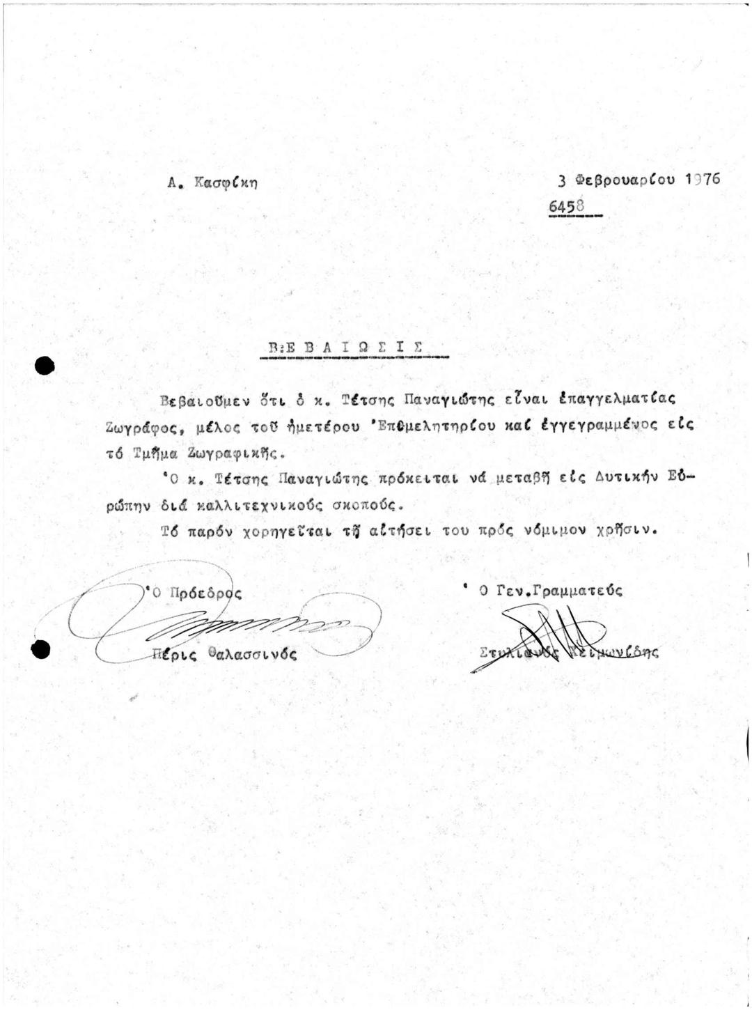 Βεβαίωση Μέλους ΚΕΕ Επαγγελματία Ζωγράφου
