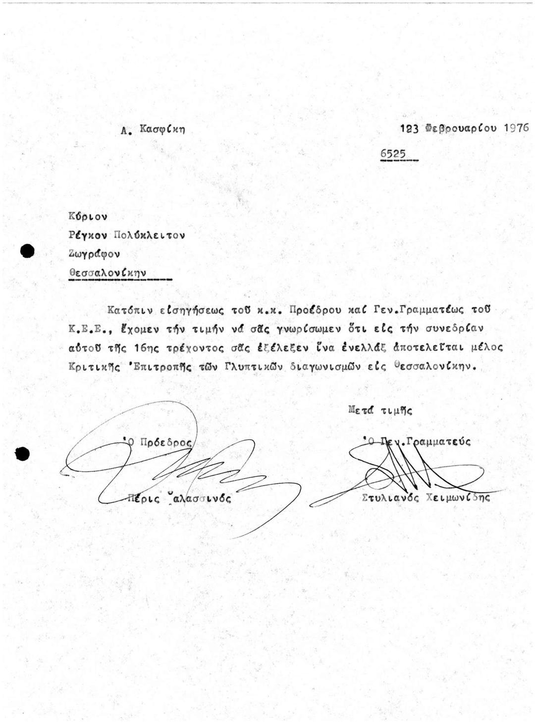 Περι Εκλογής Μέλους Κριτικής Επιτροπής Γλυπτικών Διαγωνισμών
