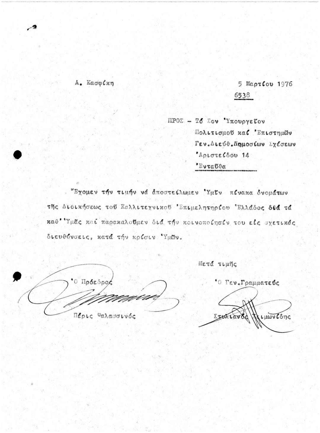 Περι Αποστολής Πίνακα Ονομάτων της Διοίκησης του ΚΕΕ