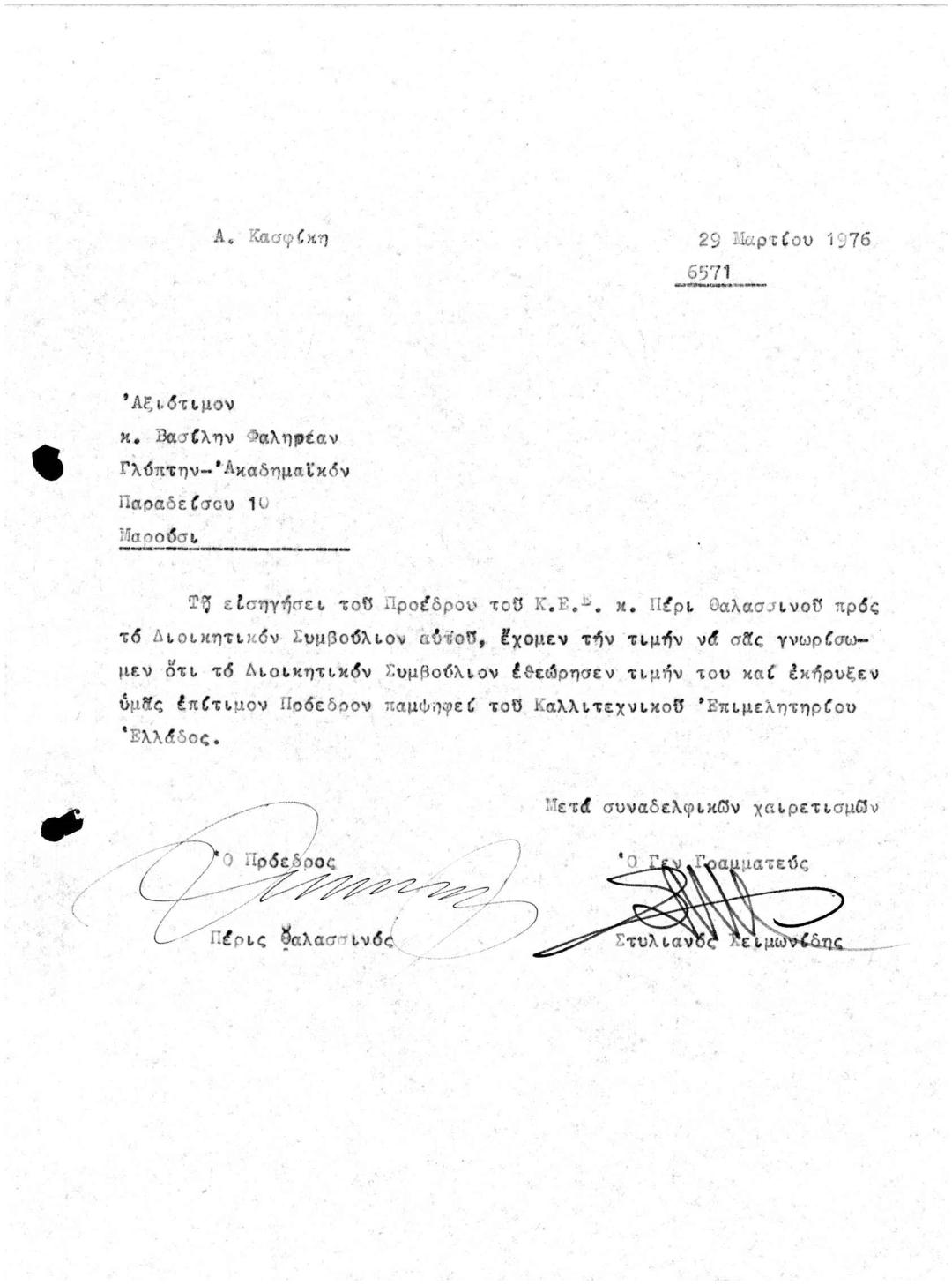 Επιστολή προς Μέλος του ΕΕΤΕ: Περί Κήρυξης Επίτιμου Προέδρου