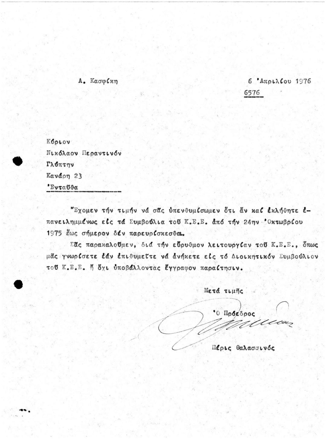 Επιστολή προς Μέλος του ΕΕΤΕ: Περί Μη Παρουσίας σε ΔΣ
